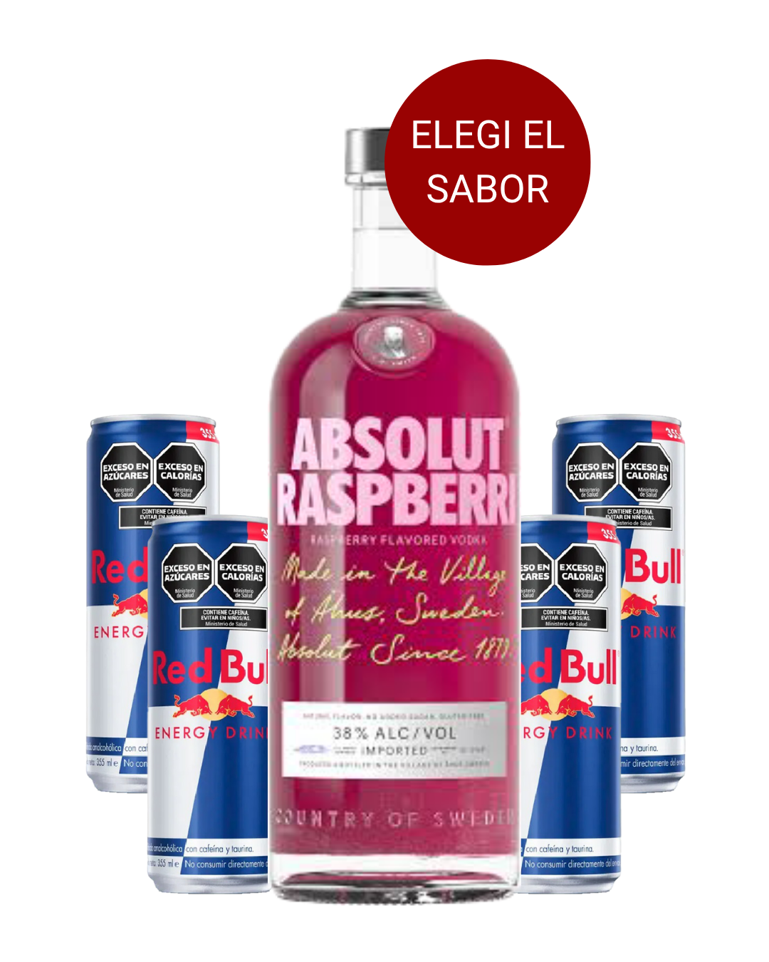 Incluye: 1 Absolut saborizado (sabor a tu eleccion) + 4 Red Bull