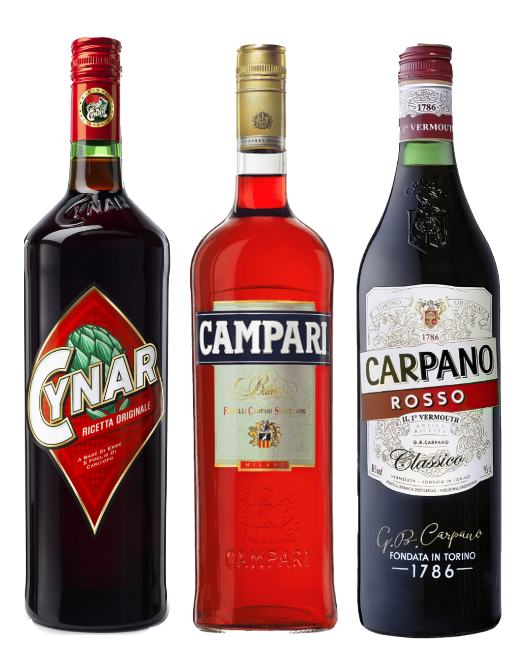 Incluye: 1 Cynar + 1 Campari + 1 Carpanno Rosso