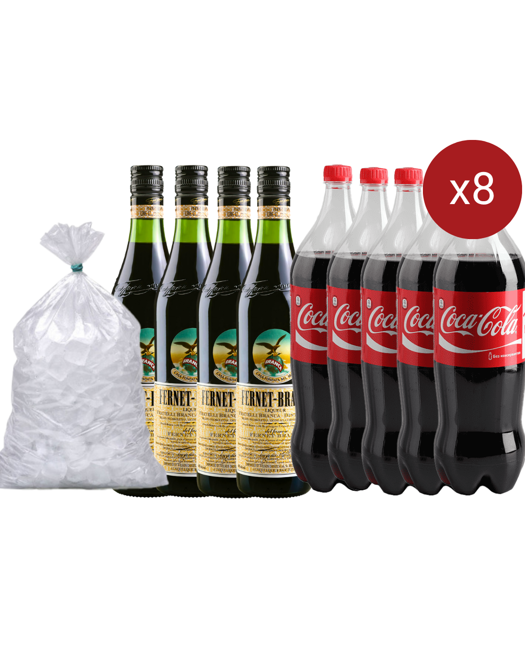 Incluye: 4 Fernet Branca 750 ml + 8 Coca 1.75 lt + Hielo GRATIS