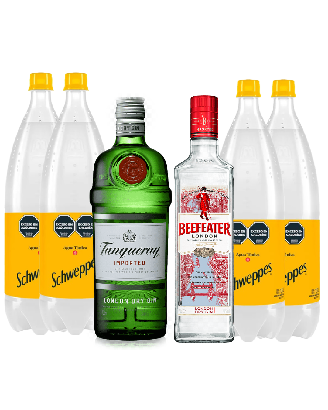 Incluye: 1 Tanqueray + 1 Beefeater 700 ml + 4 Tonica